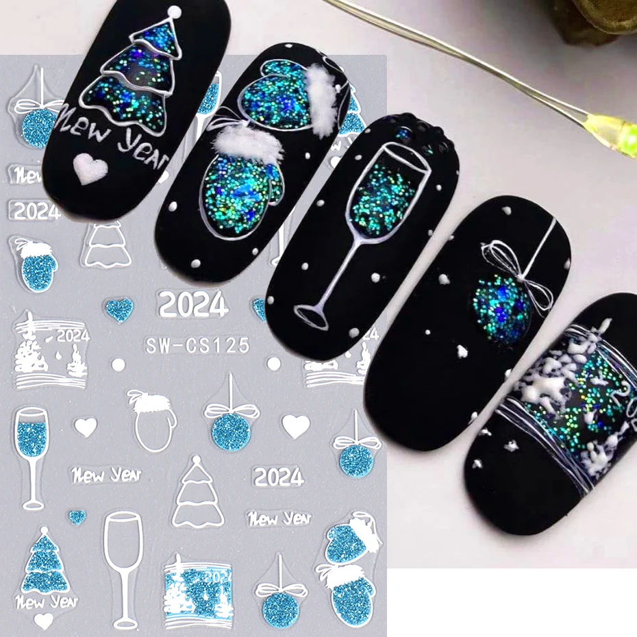 New Year Nail Stickers 2024 Countdown Clock Design Champagne